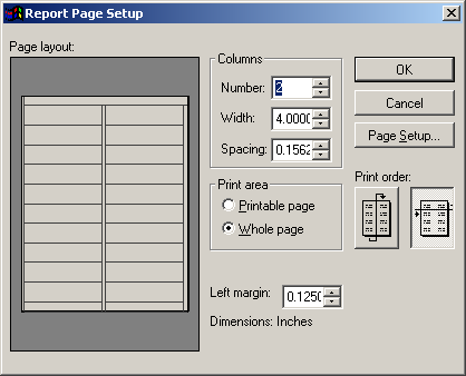 The Page Layout window allows you to determine the number, width, and spacing of the columns in the label or report, as well as the left margin of the entire page. This section will instruct you on how to modify these settings.